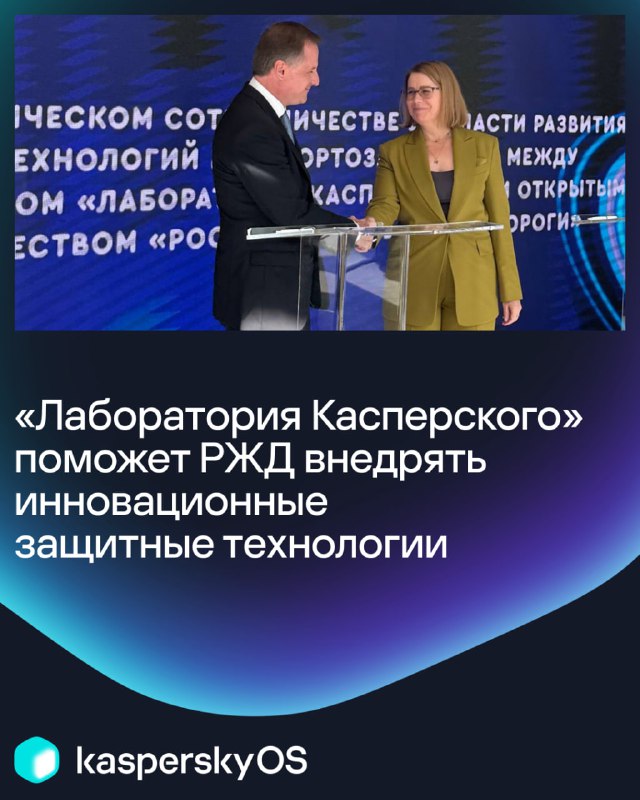 «Лаборатория Касперского» и «Российские железные дороги» в рамках III Международного форума цифровых технологий в сфере транспорта и логистики «Цифровая транспортация 2025» заключили соглашение о стратегическом сотрудничестве в сфере развития инновационных технологий и импортозамещения.