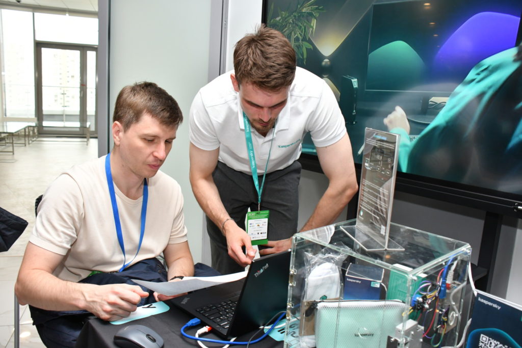 Второй день конференции оказался даже более насыщенным интересными докладами, чем первый. На стенде «Лаборатории Касперского» не иссякал поток желающих взломать сейф и получить мерч. Правильно настроить для этого политики KasperskyOS смогли 7 человек. Большой ажиотаж вызвал турнир по Quake — игра работала на тонком клиенте под управлением нашей операционки. В отстреле монстров поучаствовали около 30 человек. Впрочем, основные события конференции происходили на главной сцене РЭУ им. Плеханова.